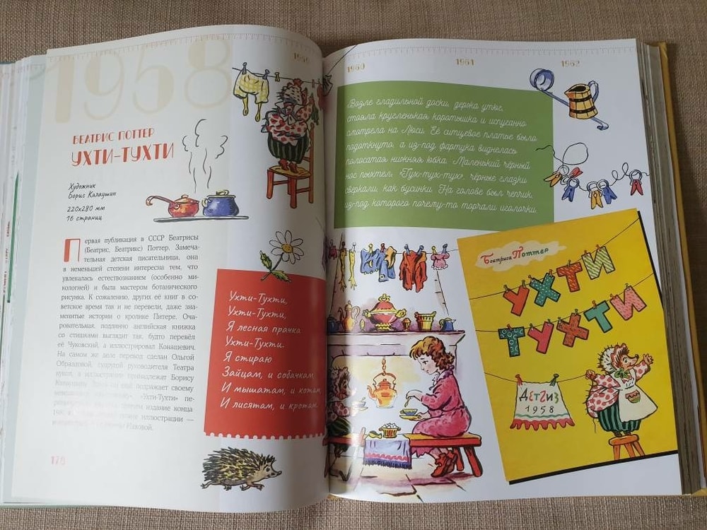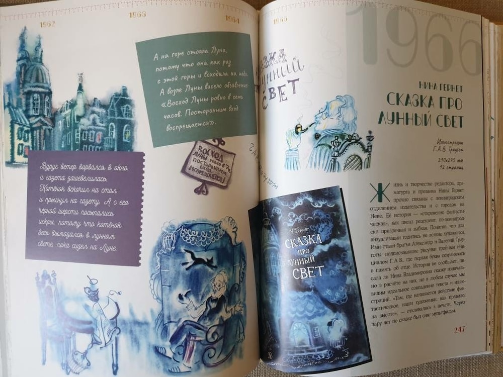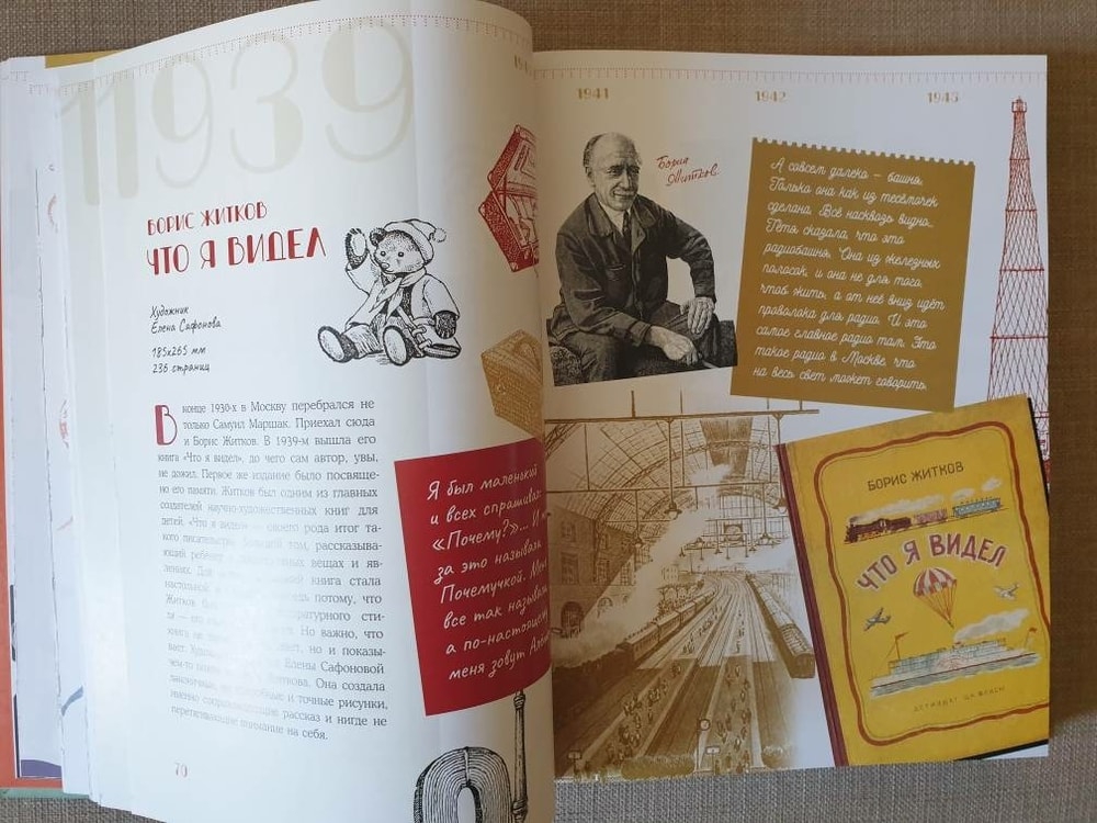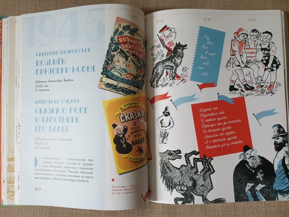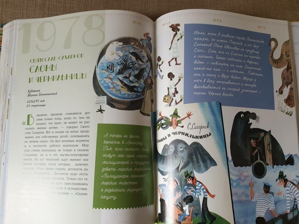 На развороте небольшая заметка о создателях книги определенного года - это писатель и художник. Фото обложки и цитаты - текст и рисунки.