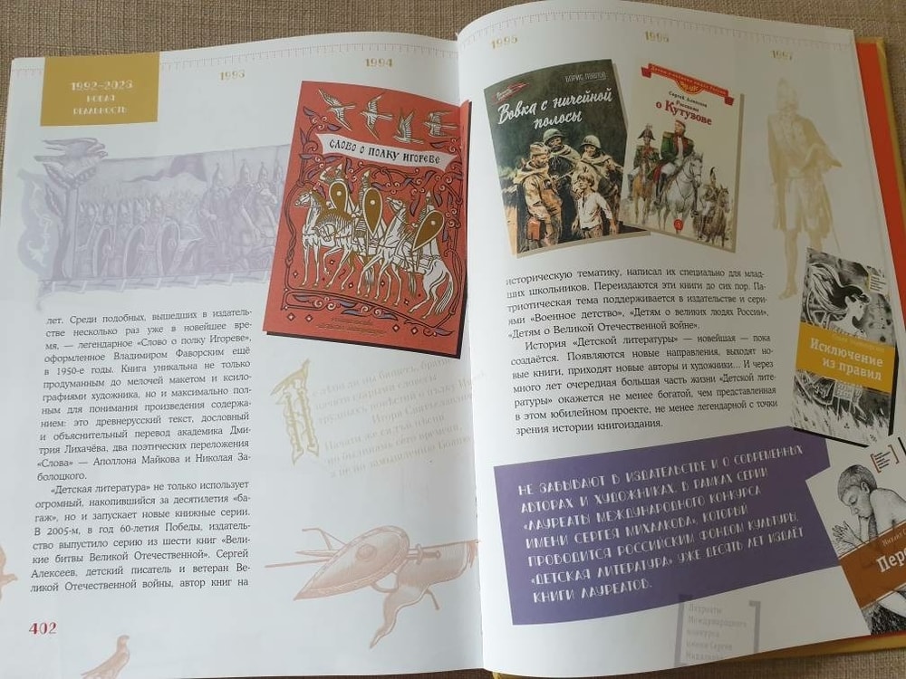 Книга приурочена к 90летию "Детгиза" (с 1963 года "Детская литература") и рассказывает об истории издательства.