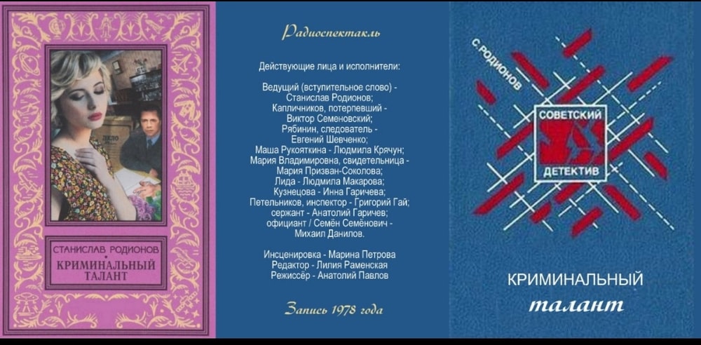 С. Родионов Криминальный талант – не очень сильная вещь, мне не особо понравилась. В городе появляется молодая преступница, которая подсыпает мужчинам в ресторане снотворное и грабит их. Затем она придумывает другую схему. В конце концов ее удается поймать, следователю удается проникнуть к ней в душу, и когда она просит отпустить ее до суда, он решается на это, в надежде, что после их разговора она стала совсем другим человеком. Финал кстати открытый. Меня как-то не проняло. Я допускаю возможность, что она была с ним откровенна и искренне верила в то, что говорит и обещает. Но я сомневаюсь, что ей хватит психологической зрелости, чтобы все это реализовать. Хотя это и не исключено.