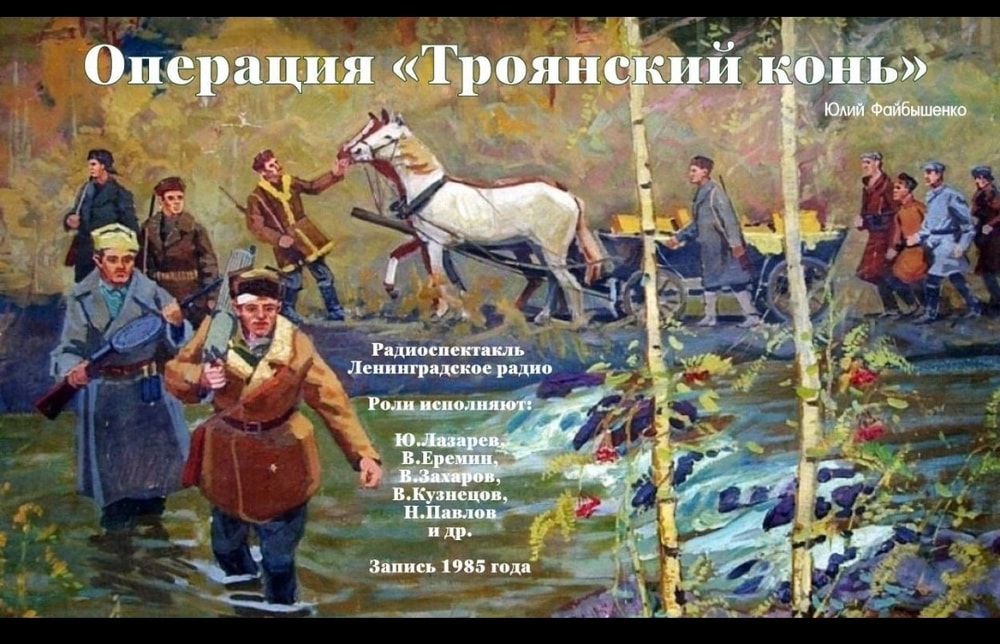 Ю. Файбышенко Операция Троянский конь – военная история, про партизан. Скорее детский вариант, мне показалось не совсем правдоподобно, несколько упрощенно. Так можно послушать.