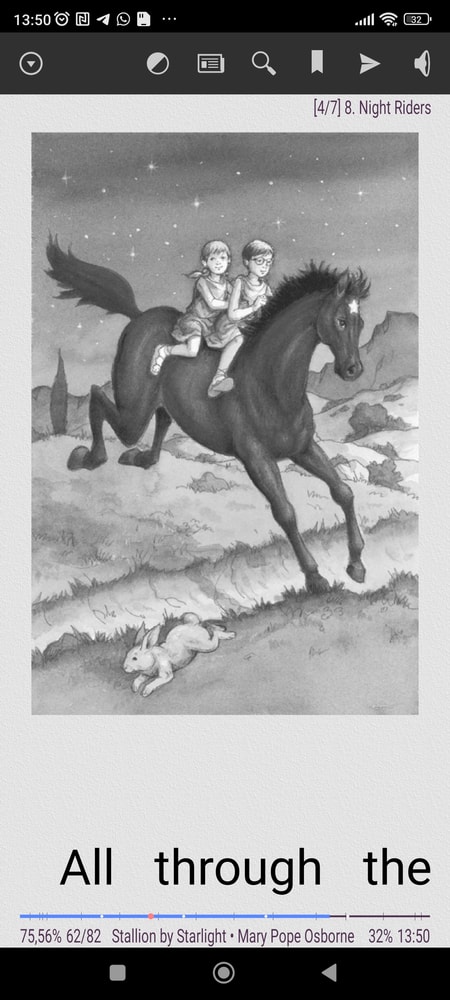 Stallion by starlight. Следующие четыре части будут о поисках секрета величия. Мерлин даёт Анни и Джеку волшебное кольцо, которое будет светиться в момент, когда секрет будет найден и бутылочку с туманом, собранным на острове Авалон, чтобы дать им на час любую способность. В этой части ребята должны встретить. Александра Македонского. Они встречают юного Александра, который знакомится с будущим конем, Буцефалом. Никто не может его усмирить. Джек и Анни выпивают волшебную жидкость, чтобы стать лучшим лошадиным тренером. Они начинают слышать мысли коня, успокаивают его, в затем дают совет Александру, что секрет величия заключается в Смирении. Даже великим царям к лицу смирение, чтобы быть великими.