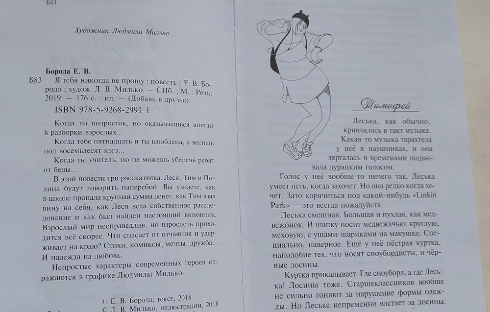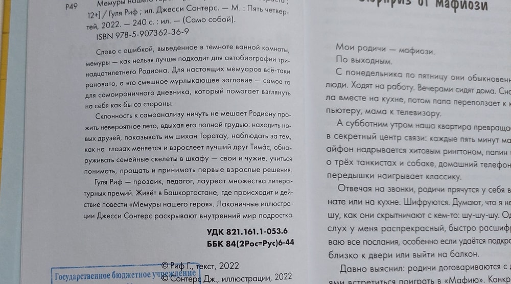 Но я книгу отложила подальше, потому что такими описаниями можно нанести серьезную травму ребенку, который о подобном, к счастью, не знает. Считаю, что подобных книг не должно быть в детском отделе библиотеке или, как минимум, должно стоять возрастное ограничение 18+. Библиотекарь книгу убрал.