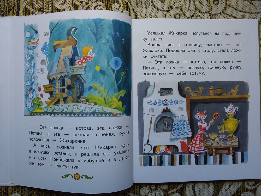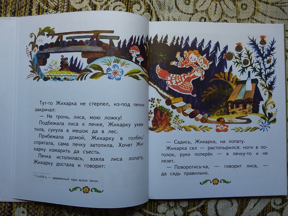 Наконец-то переиздали "Жихарку" с его иллюстрациями. В детстве у меня была картонка, которую я очень любила. Для дочки покупала у букинистов, дочь с папой зачитали книжку. Как увидела переиздание, купила для успокоения души ). Жаль, конечно, что не сохранили прежний макет и цветопередача не идеальна, но так тоже хорошо ).