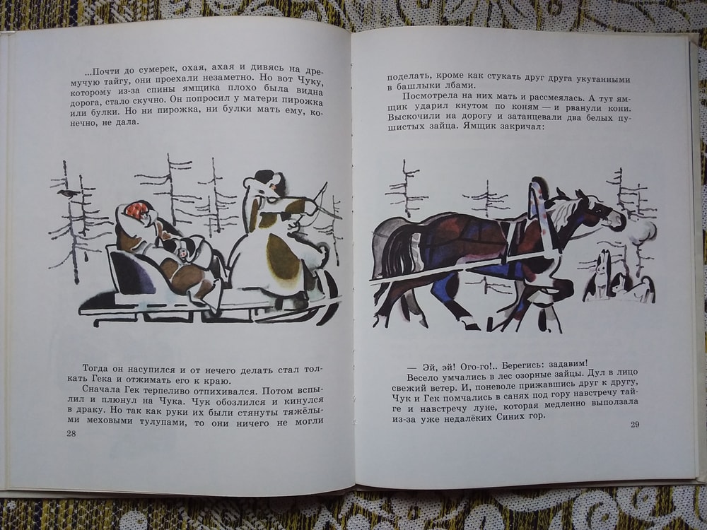 Иллюстрации Цейтлина: очень понравилась иллюстрация на обложке к Чуку и Геку. А у Митява тут такое содержание хорошее