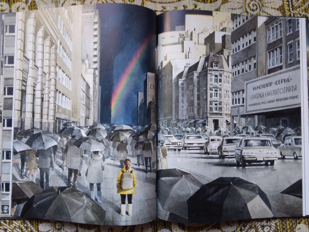 Мне кажется, очень подходит к книге про Серый город от Поляндрии. Осталось только найти яркие краски за серой завесой. Книжку дочка ещё не видела.