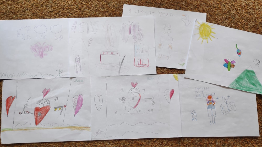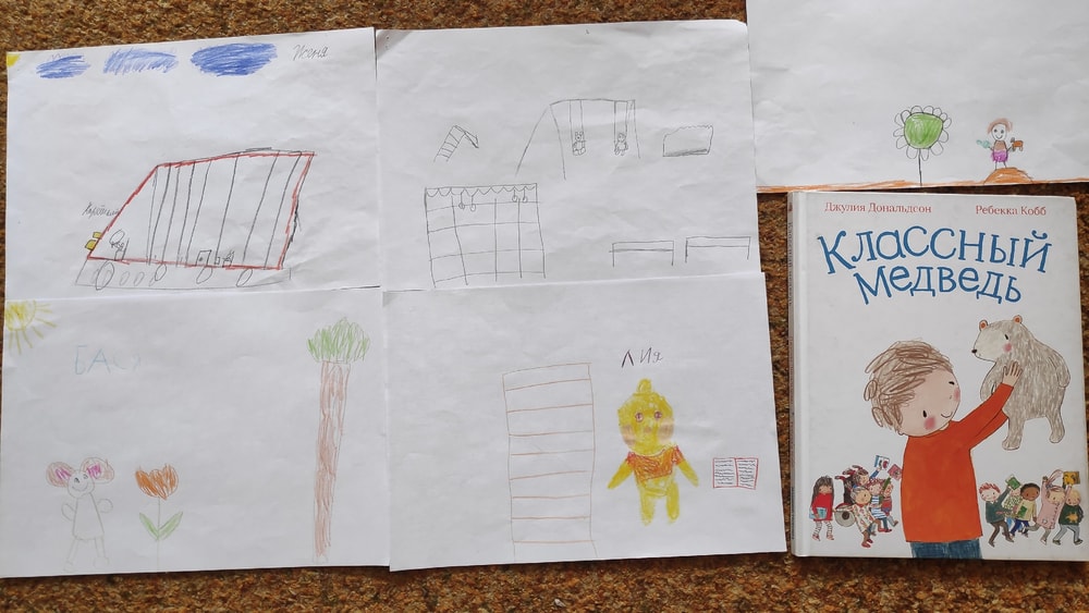 Какие-то рисунки дети забирают домой, какие-то оставляют мне. Их игрушки-талисманы катаются на автобусах, гуляют на детских площадках и в парках, читают книги и даже выращивают в пустыне необыкновенные цветы.