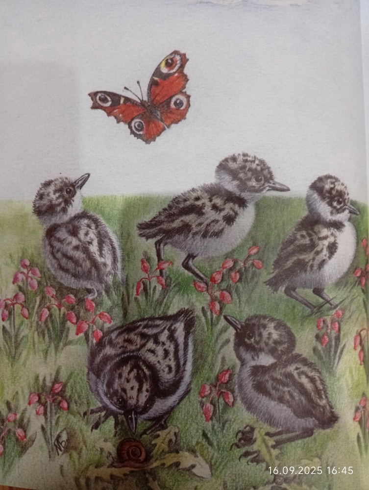 . У Пришвина есть рассказы «Луговка» (про чибисов), «Журка» (про журавля) и другие, но их тяжело мне было читать детям, потому что считаю, что человек не должен вторгаться в природу. Выкладываю только из-за приятных иллюстраций.