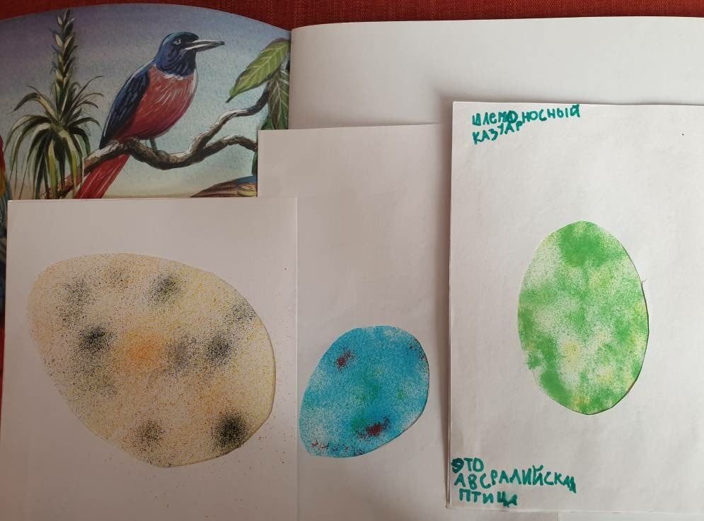 ПС. В одной книжке про птиц вот что нашла. Дочка рисовала в дошкольном возрасте яйца)
