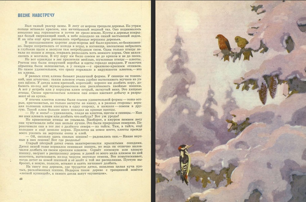У Скребицкого есть истории про кукушку, снегирей, ласточек, жаворонка... про разных-разных птичек.