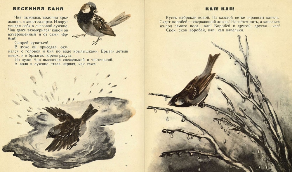 "Воробьишко" Горького. Песенка Пудика такая забавная)