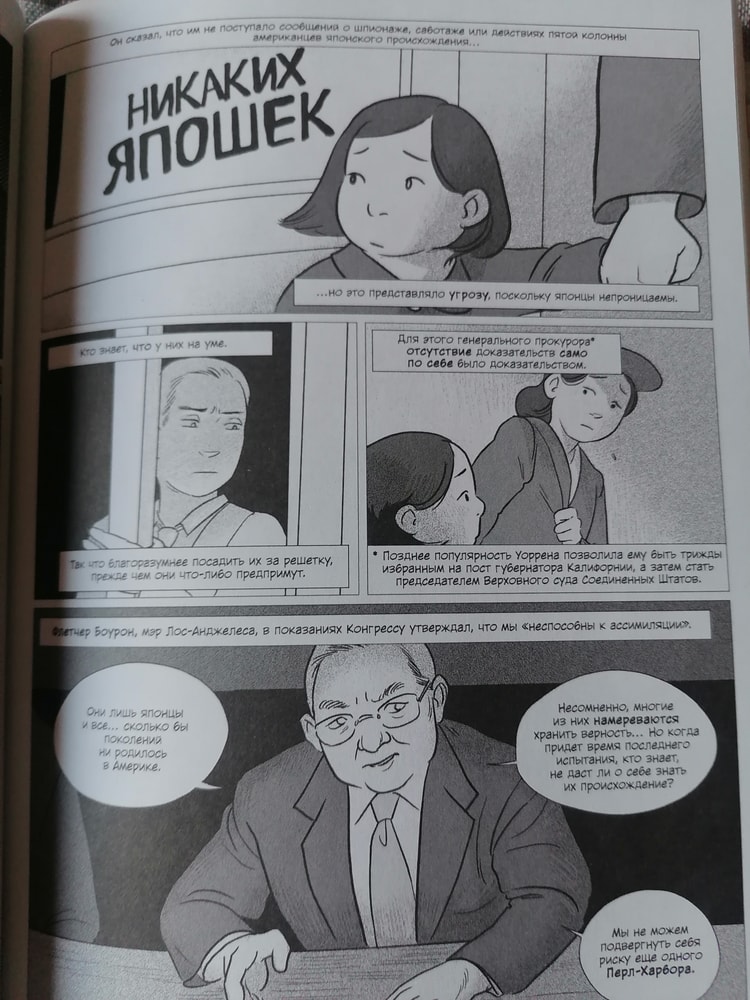 Читая этот комикс я размышляла, что история 20в богата на лагеря. В Германии, В России, и оказывается, в США. Отряды, колонны, бирки с номерами. Разные страны, а везде отзываются события мира.