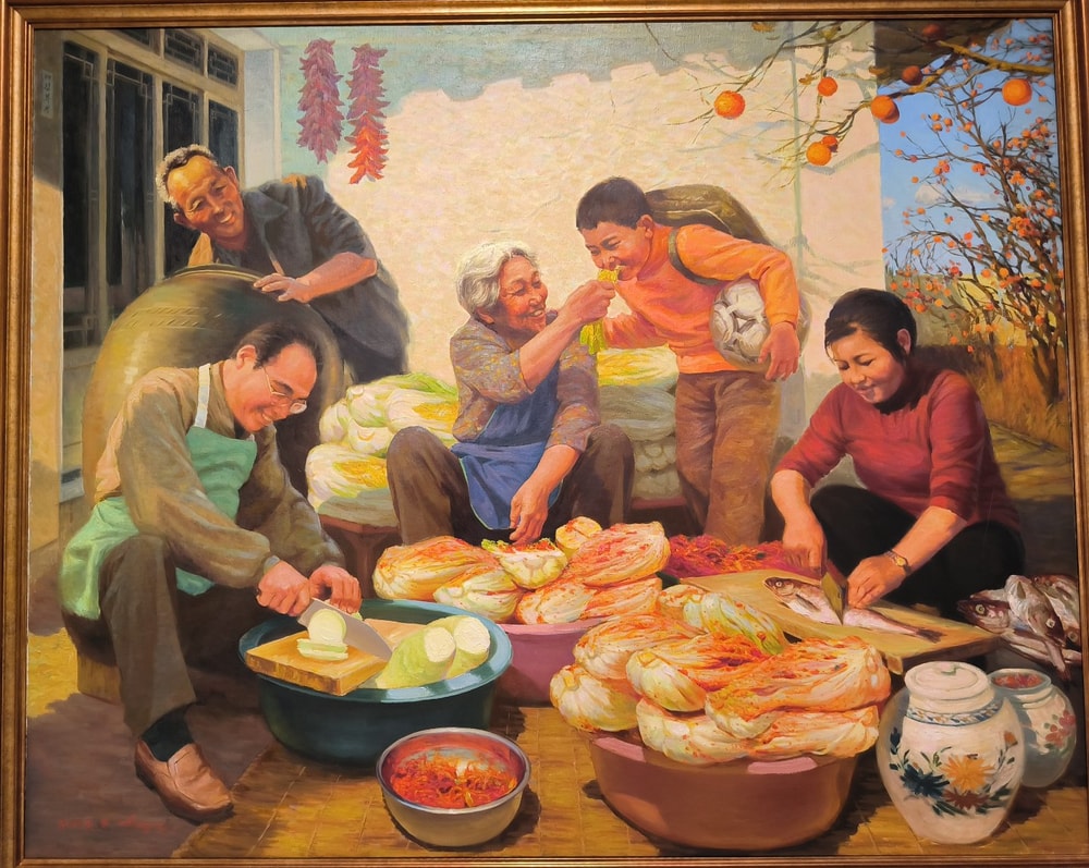 Выставка искусства КНДР в музее Декоративно-прикладного искусства.Смешанное чувство. С одной стороны - великолепная техника работ, особенно в традиционной технике - вышивки, тушь по бумаге, напыление драгоценными камнями и тут же гипер реализм. Слишком уж они все улыбаются. И слишком сделан акцент на образ врага и военную мощь.