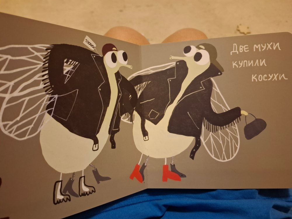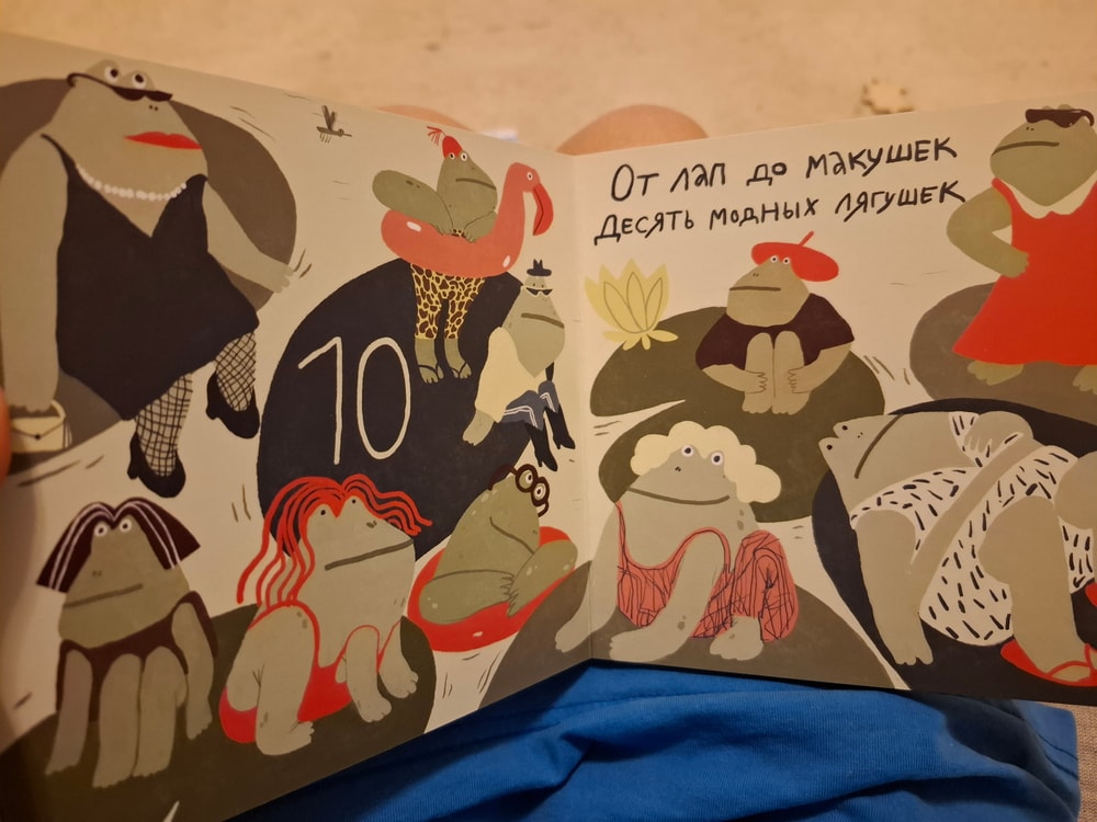 А эта картонка пользуется спросом. Взяла её, потому что у нас как раз период, когда мы любим считать все пальчиком. Есть в домашней библиотеке "Луговая считалочка" Лангстаффа с приятными глазу иллюстрациями Рожанковского, и как бы в противовес своему вкусу ещё и вот эта книга.