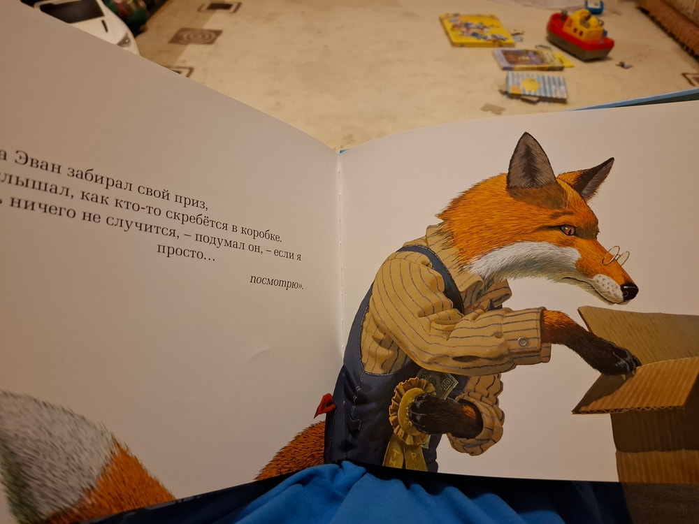 В книге поднимается тема потери любимого питомца, с более старшими детками можно обсудить взгляд на поведение Лиса, нужно ли замыкаться в своём горе? Последняя иллюстрация дарит надежду, и посему в целом книга для меня позитивная. Купленная на далёкую перспективу, оказалась пророческой - через две недели умер мамин кот Перчик, почти 15 лет был ей верным, преданным другом. И у нас кошка старая, и когда то придётся с ребёнком проживать боль утраты. Возможно книга поможет найти повод для сложных тем обсуждений.