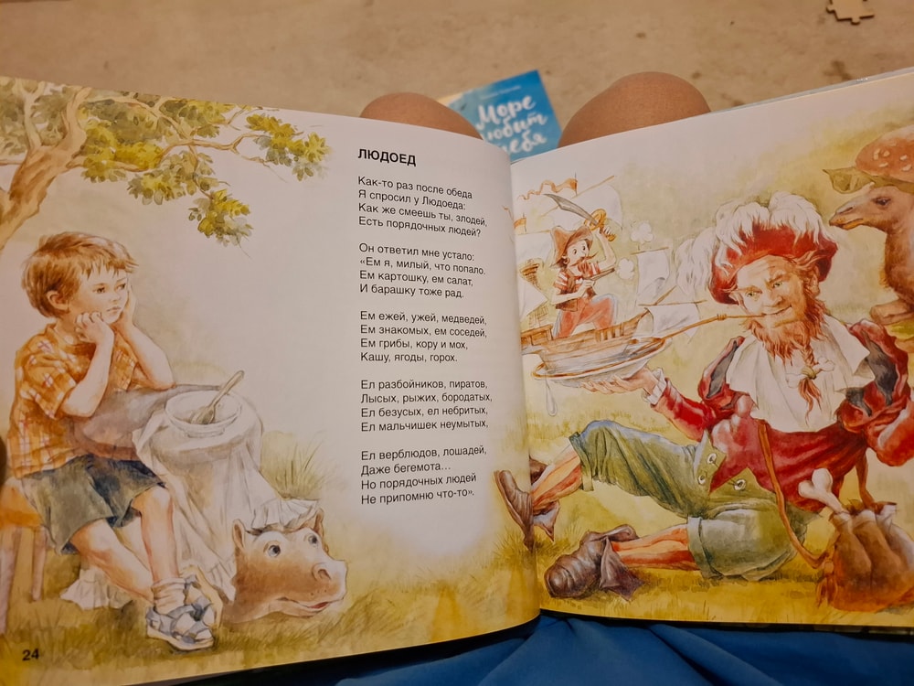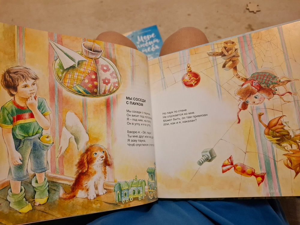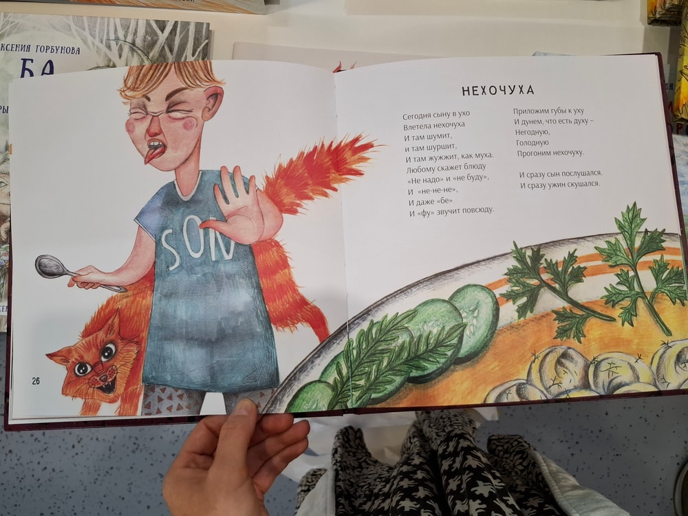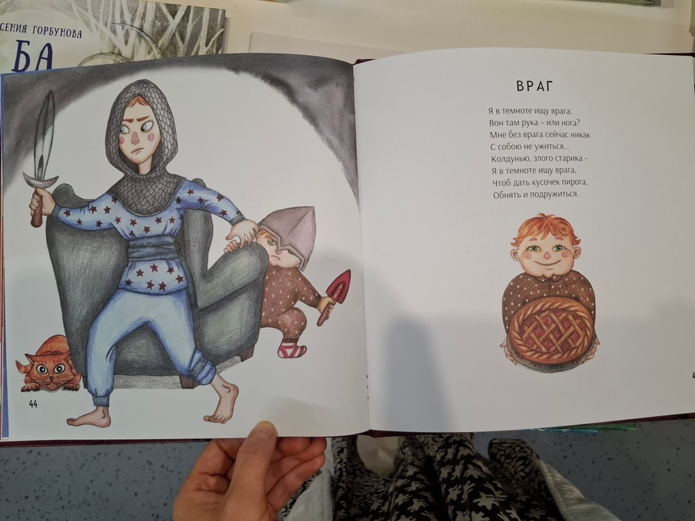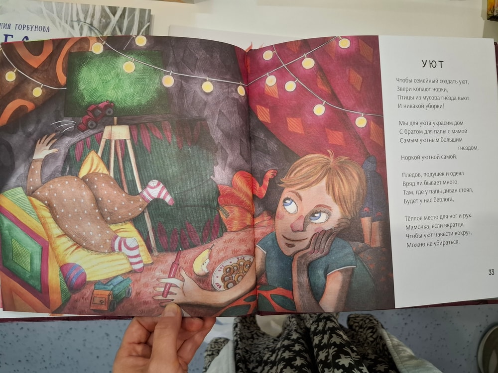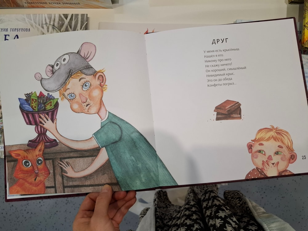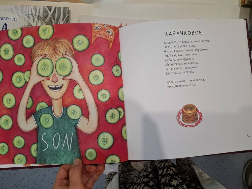 Хозяйка стенда, харизматичная, приятная и явно увлеченная делом детского книгоиздания настоятельно обратила моё внимание на ещё один сборник. Его я не купила, вот уже не помню почему - то ли по причине финансового жлобства, а может он и вовсе был не на продажу, но фотографиями страниц поделюсь
