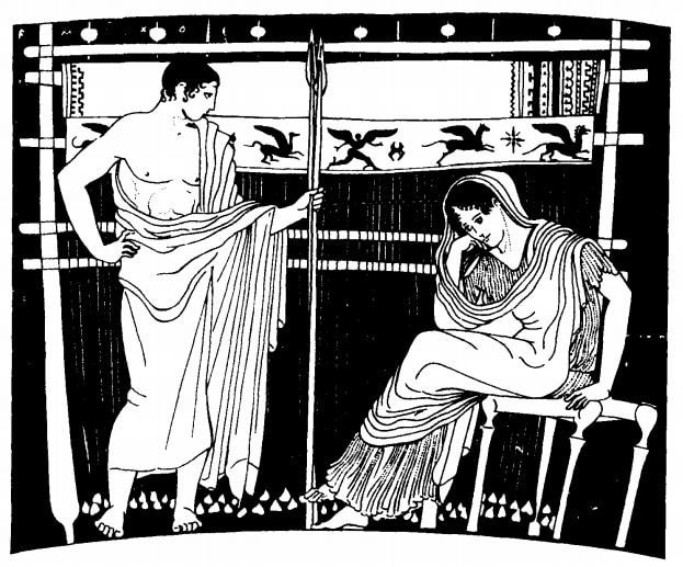 Пенелопа и Тепемах у ткацкого станка, рисунок с вазы IV в. до н. э.