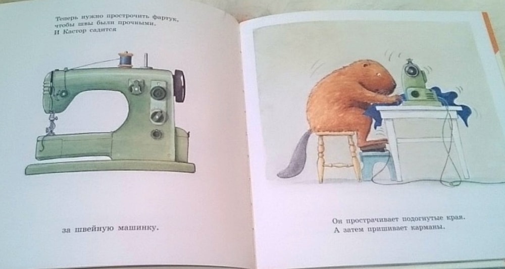 На ней-то мы и начали с детьми знакомство с рукодельным делом. Кастор – наш лучший друг по всяким ремеслам: с ним мы и фартук шили, и пирог пекли, и траву для кошек выращивали, и велосипед ремонтировали.