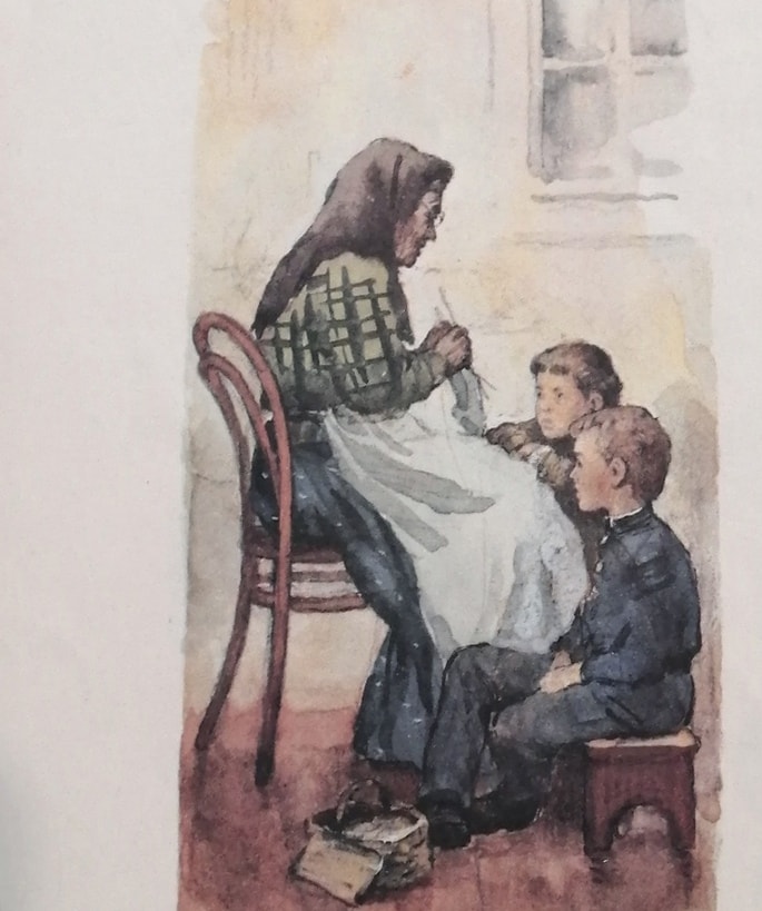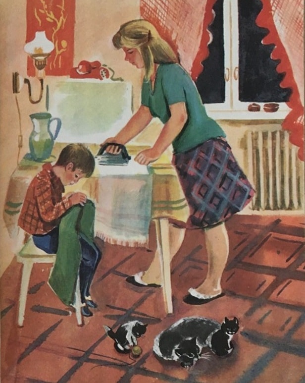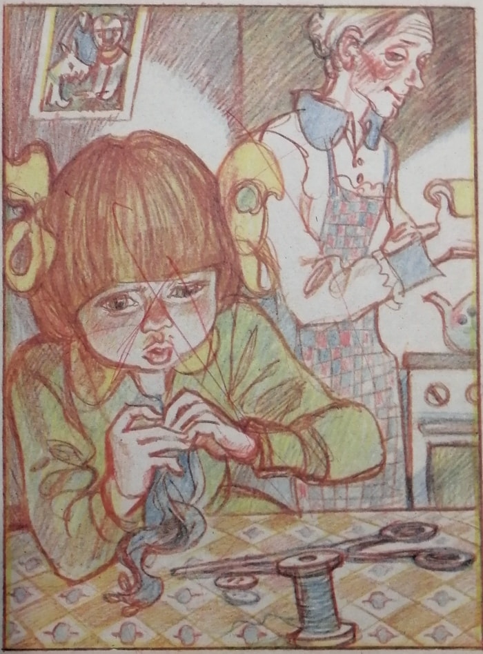 Девочки показали уже много ребят из советского детства, поэтому немного дополню. Иллюстрация к очень важному рассказу Осеевой «Злая мать и добрая тётя»: