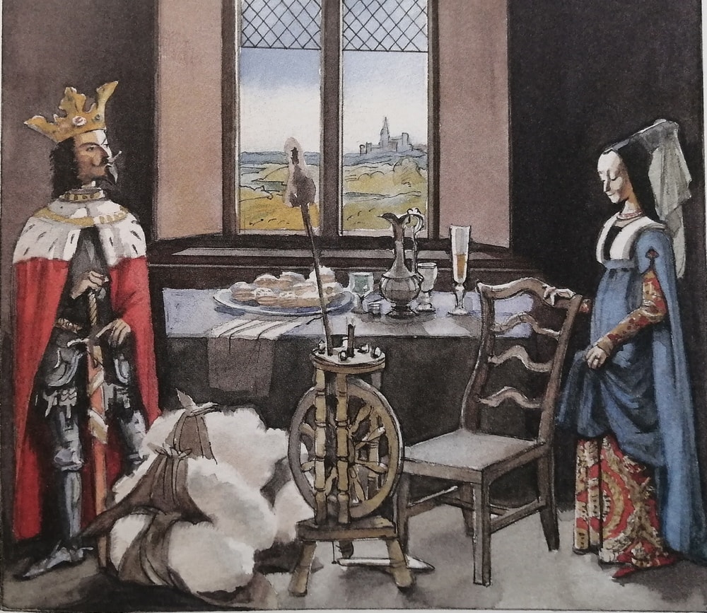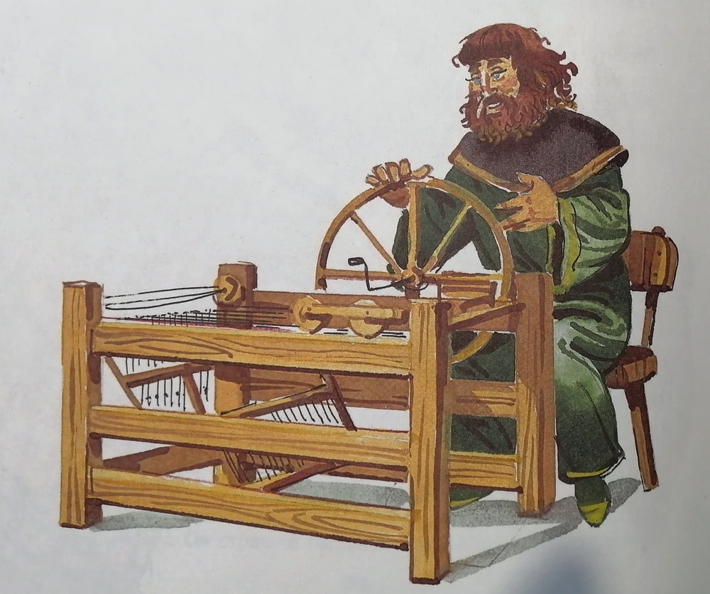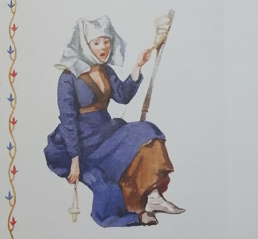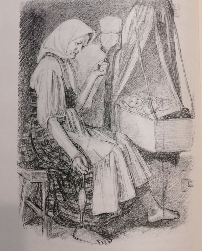 Еще я умею прясть на настоящей колесной прялке (справедливости ради точнее будет сказать «умела»). У меня до сих пор где-то лежит тетрадка, куда я лет в 11-12 зарисовала подробнейшую схему её конструкции, чтобы самой сделать на даче. Не сделала, и бабушкина прялка потом исчезла в неизвестном направлении. У меня осталось только веретено.