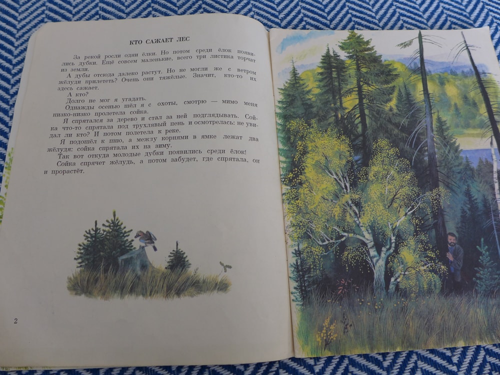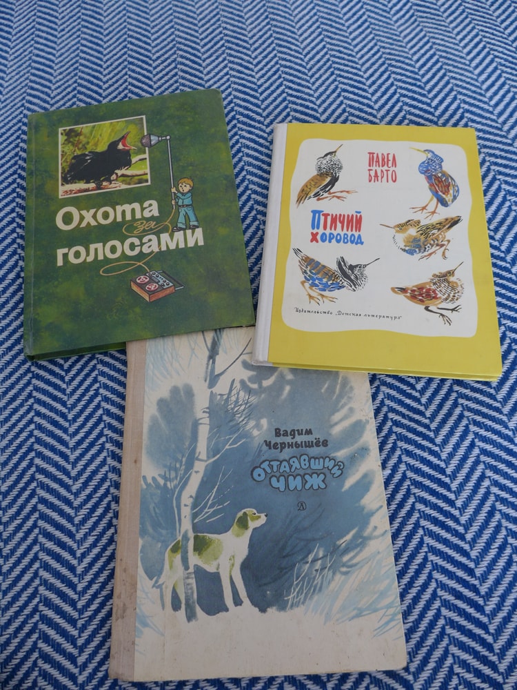 Дальше я нашла книга, которые полностью или частично посвящены птицам. Это и рассказы, и сказки. На работе даже попался научпоп на птичью тему. Мы с детьми с самого их раннего детства любим слушать голоса птиц и зверей (продавалась в Лабиринте такая книга со звуковым блоком, я только не успела купить именно птичью). И сейчас мы без проблем узнаём по песням некоторых птичек, любим искать их на ветках, подкармливаем в домашней кормушке за окном и ходим в лес - благо он буквально напротив. Позволю себе разбавить иллюстраторов нашим лесом в разные сезоны: август 2024, бесснежный январь 2025, свежий май 2025 и туманный октябрь 2025.