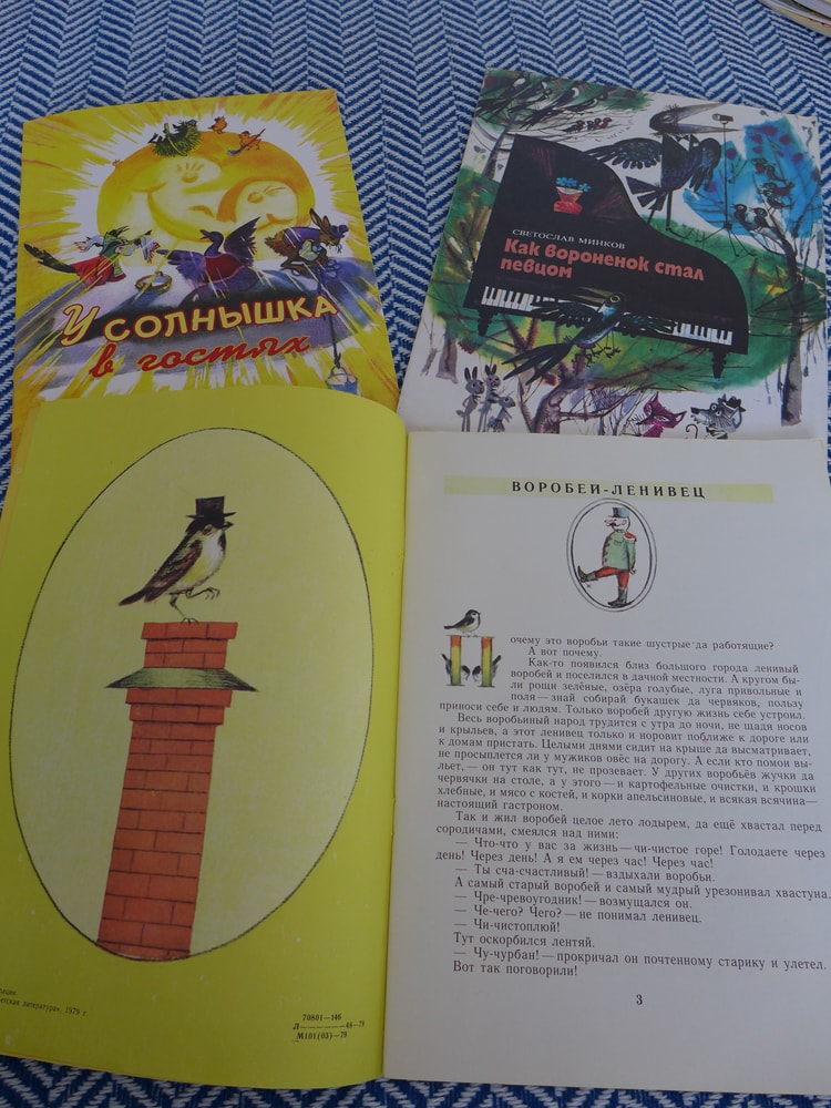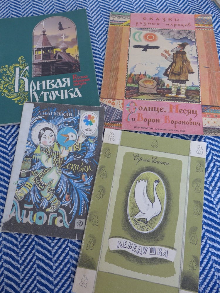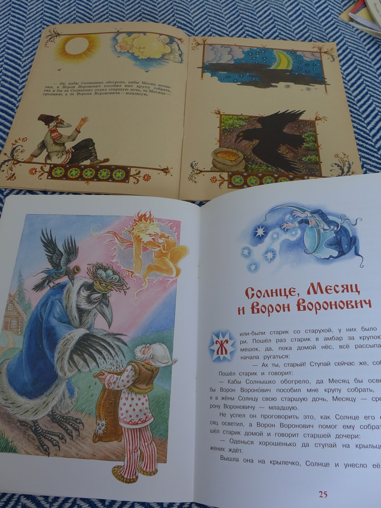 Вот несколько книг, которые точно были у меня в детстве. Но "жили" они у дедушки с бабушкой, где мы проводили наверное большую часть года - как учебного, так и каникулы. Для сравнения добавила современный вариант моей любимой сказки "Солнце, Месяц и Ворон Воронович".