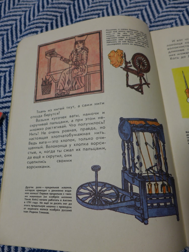 Нашёлся и научпоп для детей по тканям, плетению и вязанию.