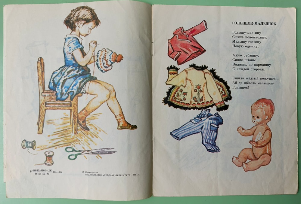 Оля, спасибо за Благинину! Эта иллюстрация с малышом-голышом мне вспомнилась самой первой ) Эта одежка меня в детстве морально убивала - это был недостижимый идеал, особенно желтый кожушок ))