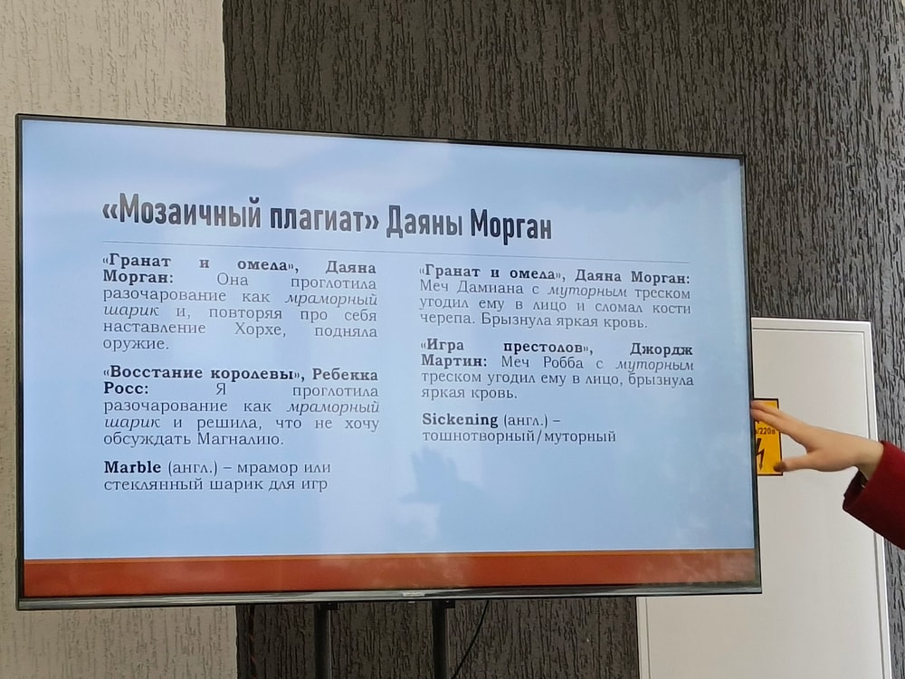 Привет Оль. Какое классное мероприятие. Лекция про плагиат очень заинтересовала, относительно Гузель Яхиной какое было у лектора мнение ("Эшелон на Самарканд" разбирали, наверное)? И ошибки в лит. произведениях - очень интересная и актуальная тема. Очень отозвалась мне эта тема. Я тут неделю уже хожу возмущаюсь: читала нового Ведьмака Сапковского, просто нет слов... Так и хочется ругательный пост написать. Понятно, я там относительно перевода ругаюсь.