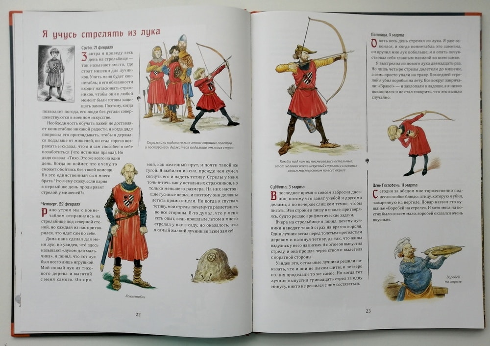 После знакомства с замками очень интересно было прочитать «Рыцарский дневник» Ричарда Платта. В нём рассказ ведется от имени одиннадцатилетнего мальчика Тобиаса Бургесса, пажа и оруженосца. Рассказ в виде дневника, что позволяет ознакомиться с разными сторонами жизни того времени.