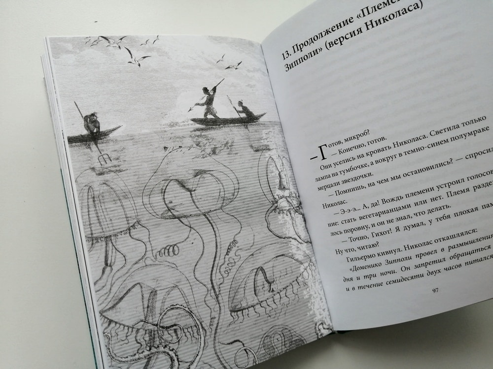 Я с предложением книги, увы, опоздала. На ней стоит 12+, но это явно из-за нескольких строк о выдуманном племени людоедов. Всё остальное в книге вполне можно читать лет с 8, а детям, которым тяжело дается чтение, – лет с 10 (как раз 10 лет и герою книги). Потому что начинается она с описания классического случая тяжести чтения: вроде как предложение простое, а есть незнакомые слова, начинаешь искать толкование незнакомых слов – увязаешь в незнакомых словах еще глубже, в итоге радости от чтения – полный ноль. И книга ставится обратно на полку. Поскольку вся эта ситуация была мне хорошо знакома, я думала, что книга откроет тайное знание, как полюбить читать. Но в результате всё закончилось тем, чтобы найти такую книгу, которая заинтересует конкретного ребенка. Чем я, собственно, и занимаюсь, второму сыну очень трудно подобрать книги.