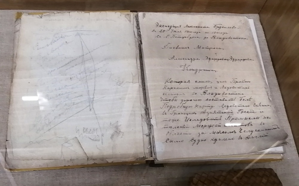 А когда мы дошли до места, посвященного плаванию «Святой Анны», где было всё, про что сын читал в «Тайне пропавшей экспедиции», включая один из тех самых дневников… Я думаю, многие испытывают чувство радости, когда вдруг вживую случается увидеть то, о чём когда-то читал в книгах, это совершенно ни с чем не сравнимое ощущение.