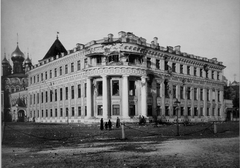 (...) при бомбардировке не осталось нетронутым ни одно кремлевское сооружение; следы — от пулевых выбоин до снарядных зияний — есть на каждом.