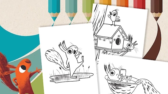 В серии два главных персонажа: умная и начитанная птица и вредные, ничего не знающий и очень эмоциональный бельчонок.