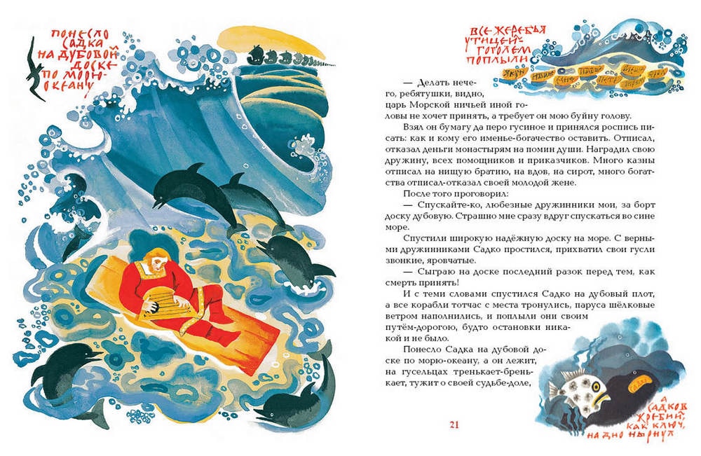 Читали и смотрели «Садко»: наша домашняя книга от Речи (проза, очень красочно оформленная книга-скрепка), учебник (в стихотворной форме) и фильм-сказка 1952 года. Оказалось, что при схожести сюжета это три разных произведения. Проза понравилась больше.