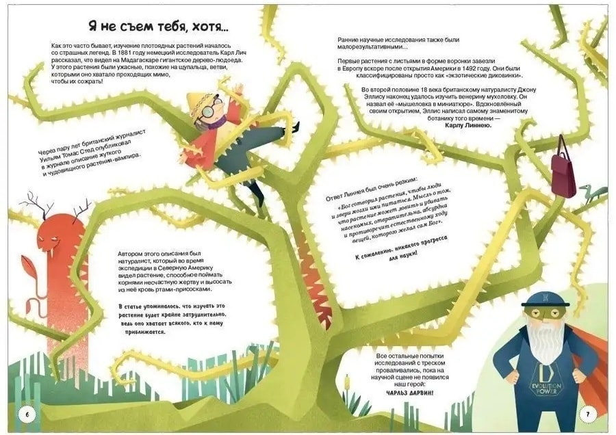 Очень хорошо написанный научпоп. Если бы ему вместо черно-белых рисунков (очень хорошо нарисованных, но я предпочитаю натуральные фото растений) добавить фото современного качества, книга получилась бы отличная! Самое интересное, оказалось, что чтобы увидеть хищные растения, совершенно не обязательно ехать в далекие страны, часть этих милашек растет на наших обыкновенных болотах и прудах: росянка, жирянка, пузырчатка, альдрованда.
