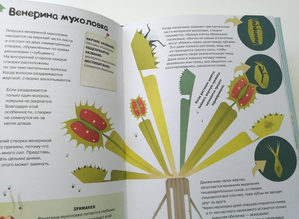 Как я поняла детей, этой темой они должны были заниматься до самого нового года, оттачивать на ней умение создавать проекты. И я решилась на покупку современной книги плюсом к библиотечной. Елена Фин «Всё о хищных растениях».