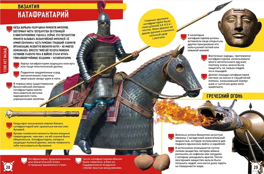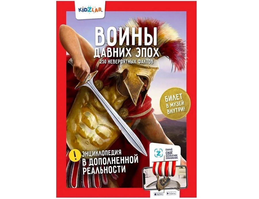 «Воины давних эпох», мини-энциклопедия. Красочная книга с дополненной реальностью (но мы не пробовали смотреть). Рассказывается о вооружении некоторых воинов от древности до средневековья. Можно читать с дошкольного возраста, а потом в школе использовать для небольших проектов.