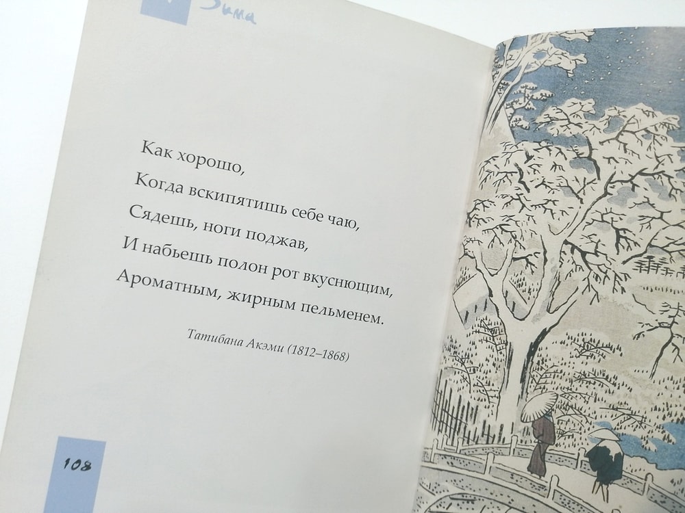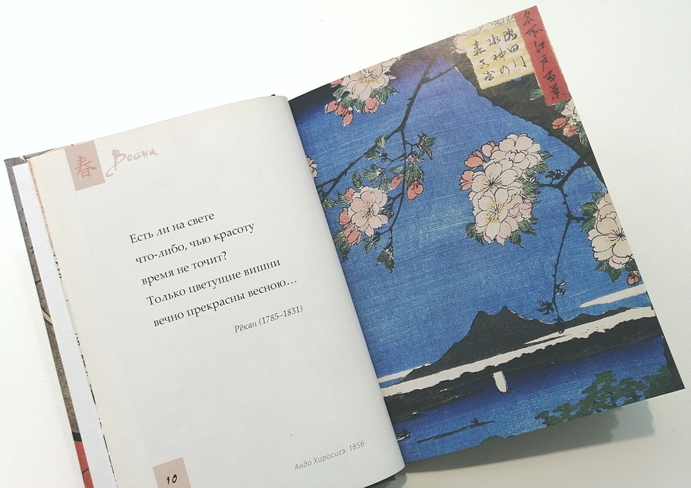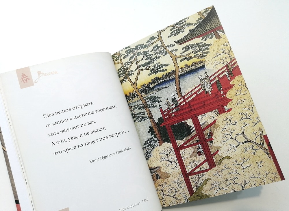 «Бабочки и хризантемы». Японская классическая поэзия 9-19 веков с иллюстрациями знаменитых японских художников. Очень уютная и невероятно красивая книга карманного формата. На каждом развороте на одной стороне стихотворение, на другой – рисунок. Стихотворения разнесены по временам года.