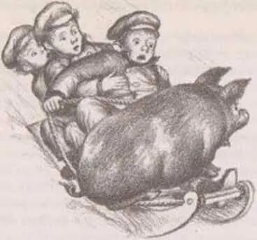 Хотя книги написаны как бы про маленькую девочку, но там описывается жизнь и труд всей семьи. Труд довольно тяжелый, но очень разнообразный и приносящий людям положительные эмоции, что самое главное. Читательский диапазон очень широк, можно читать и в пять, и в восемь, и в двенадцать, особенно при соответствующем складе характера. Сын как раз такое любит, поэтому прочитал с большим удовольствием, его очень заинтересовали все дела, которые делал папа семейства (папиным работам уделено не менее половины книги: он там и дом сам строил, и печь делал, и мебель строгал, и узорчатые полочки вырезал, и в разных заготовках участвовал и куча всего еще). Второй сын отвлекся от своей математики и тоже быстренько прочитал книги, тоже остался доволен, очень уж они умиротворяющие. У всех один из самых любимых эпизодов со свиньей на санках, когда дети тайком удрали из дома покататься.