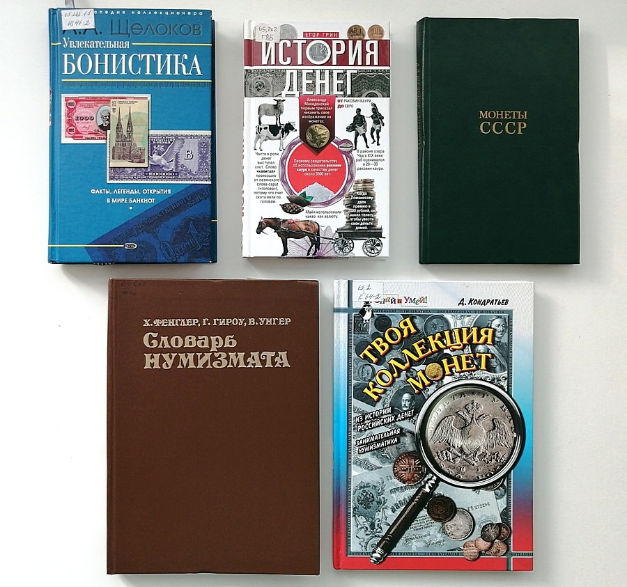 Уже год дети увлечены собирательством монет и купюр, поэтому я посоветовала почитать теоретическую часть для изучения основ. Но теория заинтересовала только одного, взял книги в библиотеке. Больше всего понравились три из верхнего ряда.