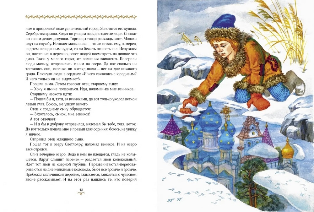 Старинная легенда о сказочно прекрасном древнем граде Китеже на дне Светлояра и ордынских воинах, пересказ Ильи Бояшова. Красивые иллюстрации, красивое сказание. Книга тоже понравилась, жаль, что слишком быстро прочиталась (она небольшая).