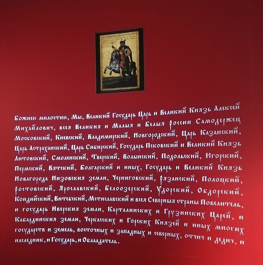 В Стрелецких палатах познакомились с полным титулом царя Алексея Михайловича, впечатляет.