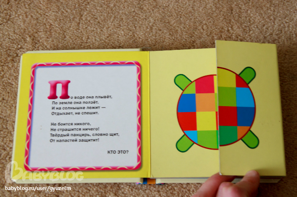Книжка -загадки. Довольно яркая и неубиваемая. Детям нравится. НО, по мне, так надо обладать извращенной фантазией, чтобы отгадать, что же прячется за закладкой... Судите сами...