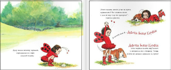 Подкупают рисунки -яркие, необычные. Да и какая же девочка не мечтает стать кем-то легким, эфемерным, порахающим, например божьей коровкой!