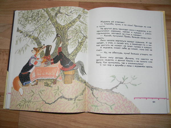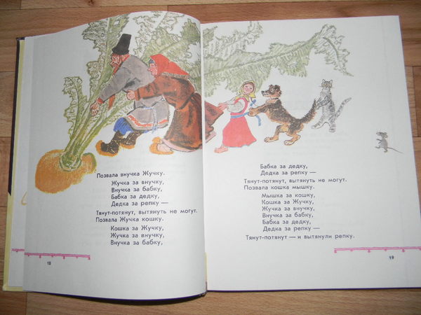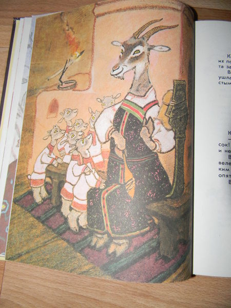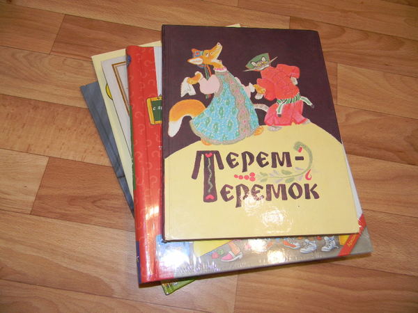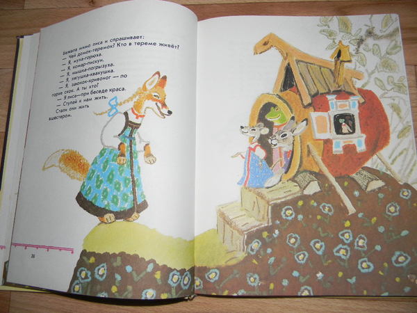 случайно совершенно бросилась в глаза знакомая обложка с иллюстрациями Рачева, первая моя мысль- ой, неужели переиздали (у меня была точно такая в детстве), оказалось нет, книга стояла как букинистика, год 1987, состояние значилось как хорошее, цена тоже приятная 160 руб, решила закажу и если книга окажется рваной , то просто не стану ее из пункта в озоне (именно там я ее увидела) выкупать. Муж поехал забирать книги и я его предупредила что там будет одна букинистическая, попросила позвонить и сказать в каком она состоянии, муж звонит и говорит а тут нет никаких старых книг, все новые вроде, я говорю а теремок, он говорит новая, привез, действительно книга новенькая несмотря на год издания, я очень рада что она у нас теперь есть, такая как я хотела, отличный шрифт, никаких мерзких рамочек и обрезанных иллюстраций, обработка сказок именно такая как в детстве обработка Толстого, Ушинского, Капицы и Булатова (УРА!!! без Афанасьева обошлись))) в общем, наконец то у нас есть хоть одна идеальная книга сказок, Ура!!!)
