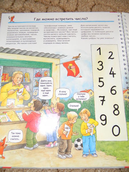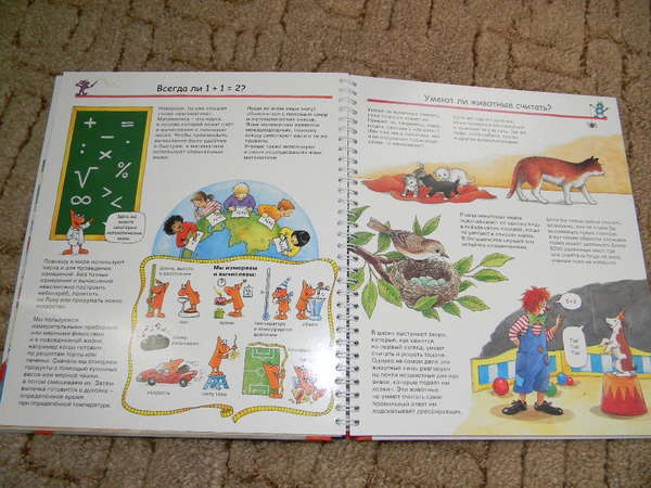 Ох, как же формат то меня удивил (приятно удивил) , я думала будет такой же маленький как у других книг этой серии, ан нет, оказался где то почти А4 в длину и чуть шире чем А4 , книга мне понравилась, интересно рассказано о том зачем нужно учится считать, что такое плюс, что такое минус, когда люди научились считать и много чего интересного, как всегда в этих книгах много окошек, качество тоже очень хорошее. Всем маленьким почемучкам обязательно понравится)
