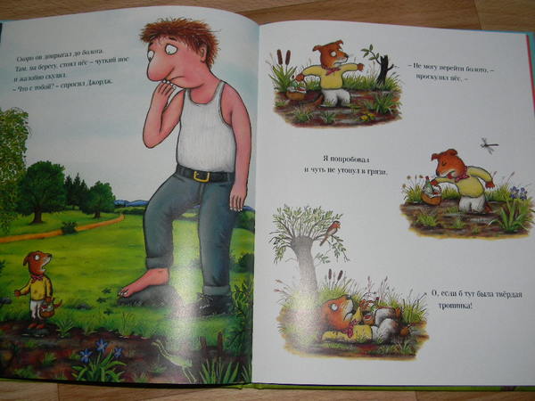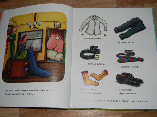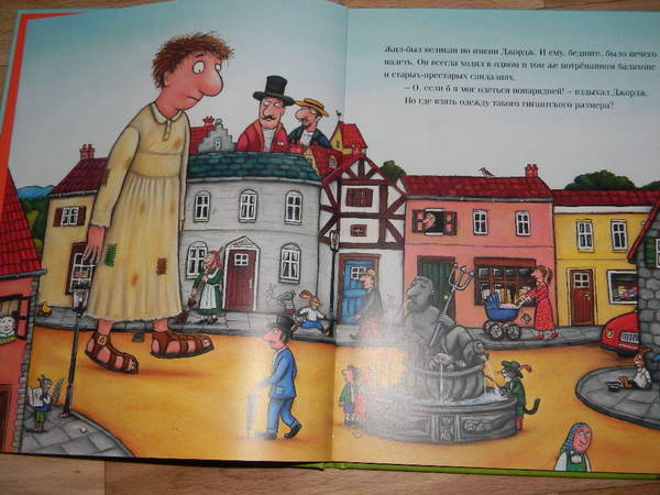 Правда была немного удивлена, тут больше проза, а не привычные нам стихи в книгах этих авторов. История о великане с добрым сердцем, который раздал всю свою новенькую одежду животным, которым она была нужна, мышкам ботинок что бы жить там, жирафу галстук вместо шарфика что бы не заболел и т.д., а сам великан остался в старом балахоне, но зато обрел много новых друзей) в общем неплохая история, добрая, трогательная, иллюстрации как всегда замечательные, но я ожидала от текста большего, эх...! Но деткам наверняка понравится, вот и мой сынок уже оценил) слушает с удовольствием.
