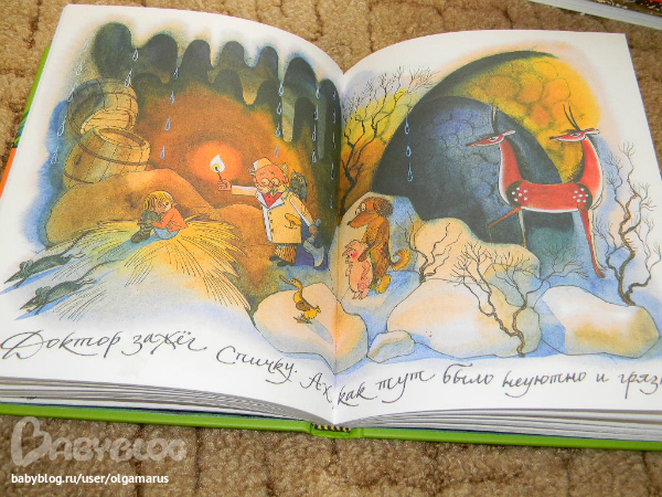 В книге все 4 части но только 2 из них проиллюстрированы, конечно есть вариант с Калиновским где все 4 части проиллюстрированны, но мне милей и краше Чижиков)) мне кажется у него более детские иллюстрации (да и у меня в детстве был такой же айболит и другого я даже не представляю)) Уверенна и сын его полюбит)