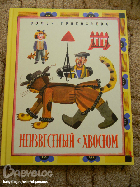 Неизвестный с хвостом.Сказки Прокофьевой мне очень нравятся (кроме Маши и Ойки) , и босая принцесса и королевство семи озер и Астрель (ну вот сейчас помидоры полетят в меня))а мне нравится, мне интересно было читать), они конечно не для малышей, и есть в них неприятные моменты но они такие интересные, я их с удовольствием прочитала! Ну это я отвлеклась,я же про неизвестного с хвостом собралась рассказывать) извиняюсь, другое название этой сказки "приключения плюшевого тигра". В отличии от тех книг что я выше назвала это совсем детская и добрая история, такое ощущение что другой автор писал, милая и трогательная. Подойдет я думаю на возраст лет, где то от 3 до 6. А сюжет сказки такой: жил был хороший и добрый мальчик Сережа, правда был он рассеянный. И был у Сережи плюшевый тигренок. Ну однажды Сережа ушел из дома и забыл выключить утюг. Плюшевый тигренок тут же ожил, понял что утюг включен, а это может привести к пожару и попытался сам выдернуть шнур из розетки, но не смог, тогда, он решил пойти искать Сережу или его маму что бы они выключили утюг. Конечно тигра ждет множество приключений и знакомств, ну и конечно все закончится хорошо). Книга получилась очень интересная и добрая, я думаю малышам понравится, читается очень легко.