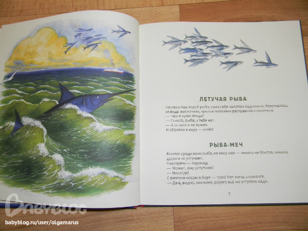 книга как раз на наш возраст, коротенькие истории, рассказы из жизни морских обитателей, очень понравились Саньке, он у меня очень любит такие рассказы, у нас Бианки это хит а эти рассказы очень похожи на Бианки ну вот к примеру рассказ Летучая рыба
